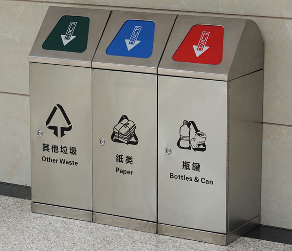 斜面投口不銹鋼三分類(lèi)垃圾桶